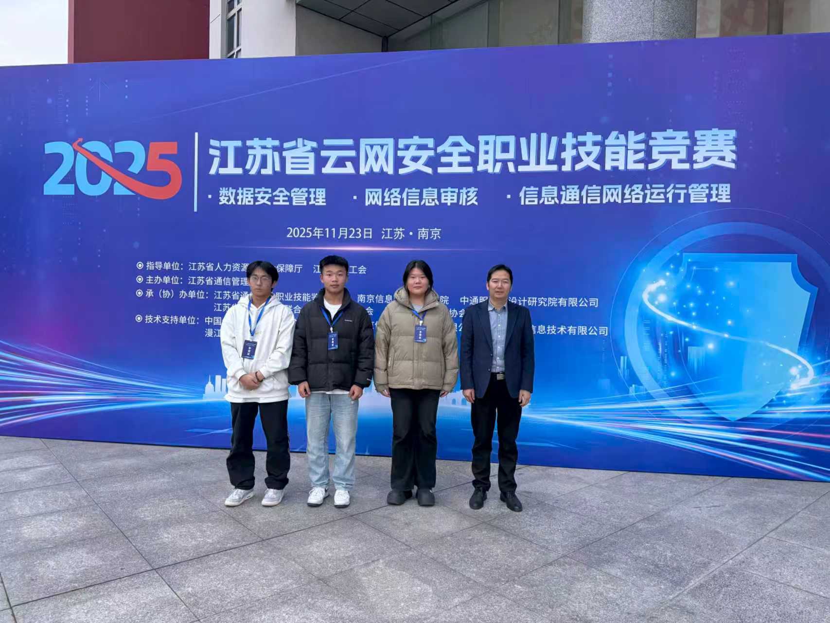 为深入贯彻落实习近平总书记关于高技能人才培养的重要指示精神,积极响应“民有所呼、我必有应”的为民服务理念,江苏省通信管理局在省总工会、省人社厅的指导下,于2025年成功举办了全省电信和互联网行业人工智能与云网安全职业技能竞赛。此次竞赛旨在通过岗位练兵、技能比拼,全面提升行业服务能力,培养高素质、强技能、专业精的网络运行保障及服务人才队伍,打造江苏网络运行安全与高质量服务的行业标杆。11月22日,决赛在南京信息职业技术学院隆重举行。我校智慧校园服务中心技术团队精心组织、科学指导,选派优秀学生代表参赛。经过激烈角逐,我校学生凭借扎实的理论基础、娴熟的操作技能和沉稳的临场发挥,在众多参赛队伍中脱颖而